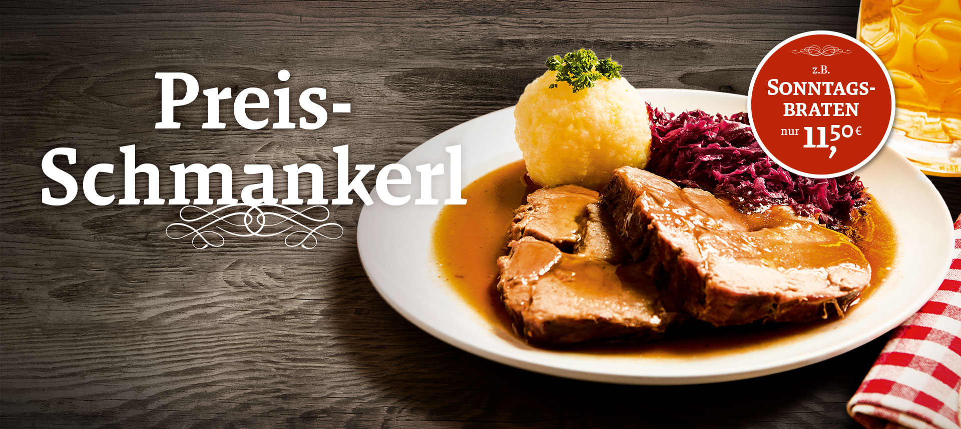Immer Sonntags geht es in unseren kleinen Zelten (alle Feste außer Augsburger Plärrer) um die Wurst – und um viele weitere Schmankerl – zum halben Preis. Die Speisen Happy Hour beginnt pünktlich ab 19:00, Karten liegen vor Ort im Festzelt aus.