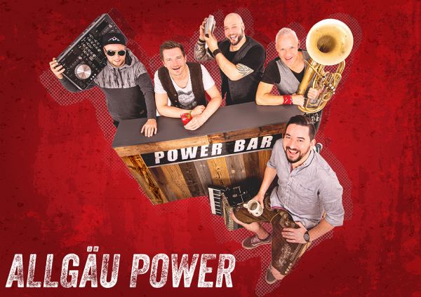 Wenn Posaune auf tanzbare Grooves und Akkordeon auf Gitarren-Riffs trifft, wenn 6 Musiker aus dem wilden Süden Deutschlands und 6 Musikstile aus der ganzen Welt aufeinander treffen, brennt bei Allgäu Power die Luft. Ob Rock’n Roll oder Oktoberfesthit, Ska oder Schlager: Mit Leidenschaft und ihrem unverkennbaren Sound reißen Allgäu Power musikalische Mauern nieder. Wer die Bagasch aus dem wilden Süden nicht kennt, hat die Megaparty verpennt! Alle Infos in unserem Programm.